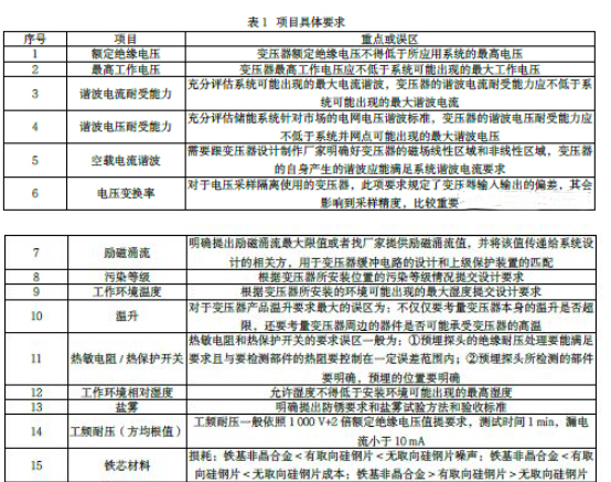 為變壓器的設計提供要求,需按下表中列出的具體項目要求: